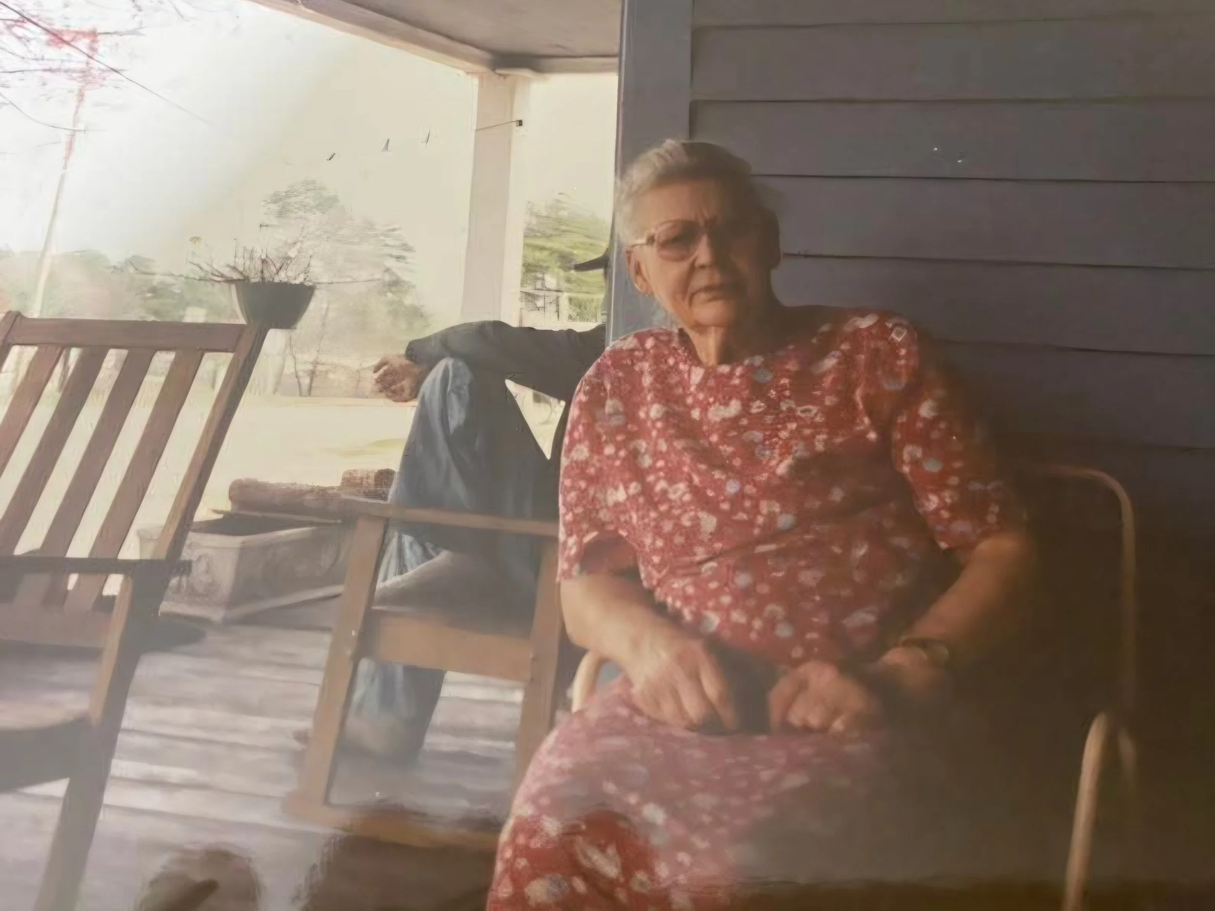 Miss Ella Mae sits on our front porch back in the early 90’s. She is the home’s original owner.